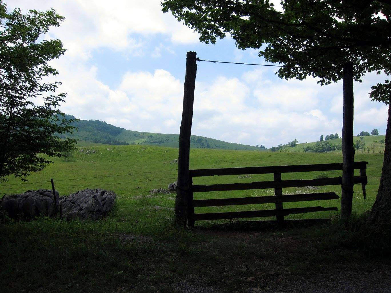 There are a handful of ways to access the Sinks, but the easiest is arguably from Route 33/55 East between Elkins and Harman. Coming from Elkins, turn right onto County Route 29, marked by a small brown National Parks Service sign announcing a turnoff for Spruce Knob and Spruce Knob Lake. Follow this road through the small towns of Job and Whitmer, continuing once it turns to gravel as you enter the Seneca Creek Backcountry/Spruce Knob Recreation Area (bonus tip: along the way you will pass some excellent fishing locations so keep that in the back of your mind if that’s your thing). Continue driving until you reach an intersection for Forest Route 1 and Gandy-Osceola Road at which point you will drive straight onto Gandy-Osceola Road (if you take FR 1, you will drive up to Spruce Knob Lake and eventually Spruce Knob, the highest point in West Virginia). Soon the forest will give way to farm land indicating you are nearly there. Keep driving until you see the gate pictured below — this is the gateway (sorry for the pun, but I had to) to the large opening of the Sinks. You can’t see them from the road, but as you will notice in the pictures below, there is a faint walking trail through the field that takes you down to the river.