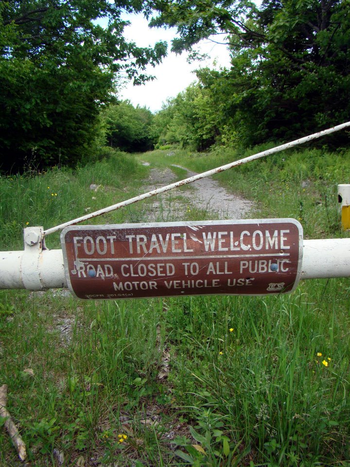 The beginning of the road to the Bell Knob Fire Tower; this is a space for one or two cars before this gate.
