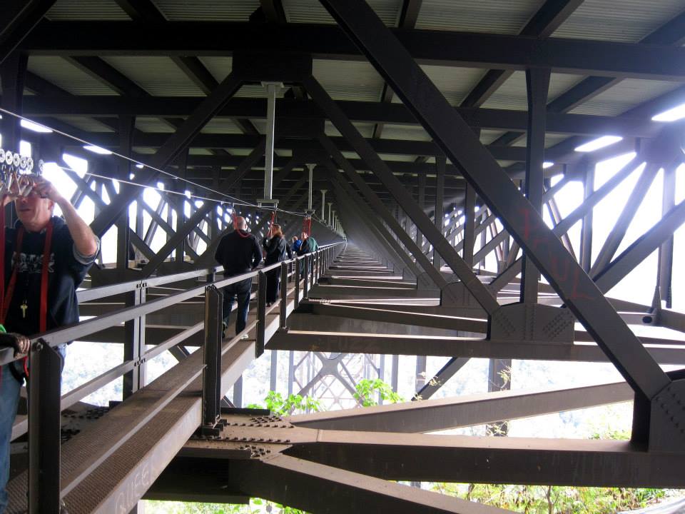TreeTops Canopy Tour consists of 10 zips, 5 cable bridges, and one rappel from the final platform which is approximately 35 feet up. Along the way, you’ll be one with nature as you zip to and from tree platforms, over Mill Creek, and along the hills. The entire tour will take 2.5 – 3 hours and you do need to be in moderate shape, as there is some hiking near the middle. Contrastingly, the Gravity zip line course is open-air and offers more scenic views of the gorge and mountains. On the longest zip, you’ll go 3,150 long (longer than the New River Gorge Bridge!) and upwards of 60mph. The fastest you go on TreeTops is 40-45mph. Cameras and a small backpack are allowed on both trips, but you must properly secure all your belongings. I brought my digital camera and looped it around my harness while Jon had his phone in his folding shorts pocket.