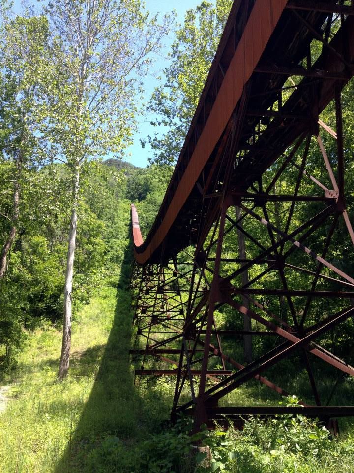 The conveyor belt at Nuttallburg ascends up the steep mountain to the mine opening. A switchback trail will take you to the top.